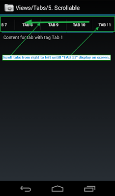 Manually you can view above given screen In your mobile device from API Demos App -> Views -> Tabs -> 5. Scrollable. You will find that top level tabs are scroll-able.